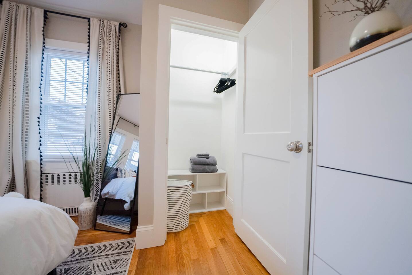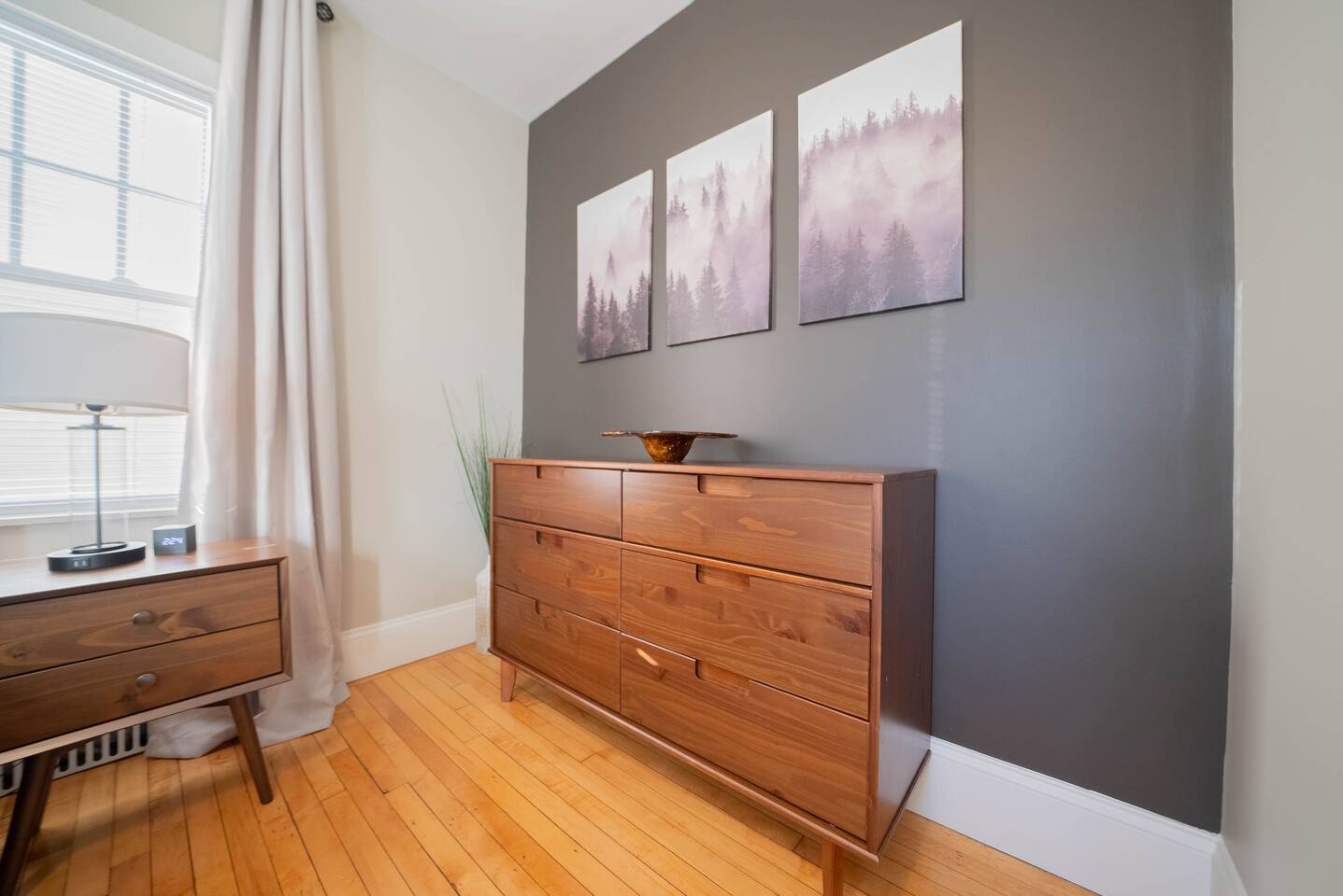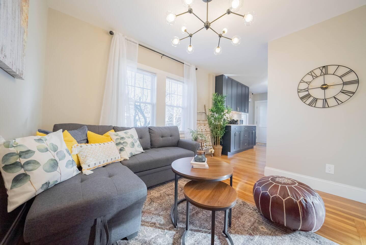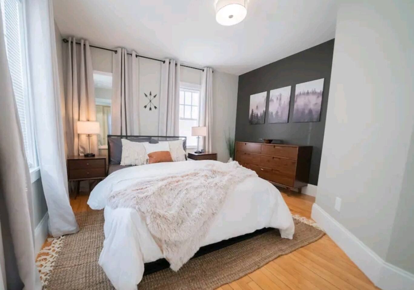 Step in from our private front entrance and you will be greeted by a stunning gallery of some of Boston’s most picturesque places. What our guests love about our listing: -The gel memory foam queen beds with down-filled pillows and comforter keeps you feeling like your sleeping in the clouds. -Our home features a lounge couch which is not only for sleeping an extra guest, but is also perfect to snuggle up in one of the many extra blanket for a cozy movie night on the large 50” smart TV with a bowl of popcorn. -The space was designed with children in mind, providing toys (Duplo Legos, lacing boards, puzzles, board games and books) for all ages, a highchair, step stool, and a pack-n-play with a 2" Memory foam mattress and all organic cotton crib sheet and blanket, making sure they have the best environment to thrive, by reducing harmful household toxins and having a beautiful yet secure place to stay….so as a parent you can truly kick back and relax. -Professionally cleaned and sanitized between each and every guest. We OBSESS over cleanliness and ensure that every surface, linens and towels are washed with natural environmentally friendly cleaners and disinfected with hot steam. BONUS – Bleach/Toxic/Fragrance-free. -In the summer, the whole house is cooled by window air conditioning units in every room, which allows each guest set their preferred temp for optimum comfort. -Our house is conveniently located only 3min from Rt.1 where you can find anything you need (ie. restaurants, grocery stores, entertainment, craft, hardware, etc.) and only 15min from Boston’s Major Attractions. -Easy self check-in via secure door keypad. -Secure 2 car off street parking, can park up to 4 cars if double parked. -Lightning fast WIFI on our large 50” SMART TV which features complementary Netflix. -Complementary breakfast includes oatmeal, regular and decaf coffee, and a variety of teas. What some of our guests don’t like about our listing: -There is no included yard in the provided guest space, the owner reserves this for their own use. However this house features a nice covered porch area with seating for enjoying time in the fresh air. There are also many attractions very close to get out and stretch restless limbs- including a zoo, peaceful hiking trails which you can see the Boston skyline from, parks, and indoor obstacle courses and escape rooms, all easily found with the help of our guest guide book. -Our home is a multi-family property which means there is a potential for noise and sounds of footsteps from the apartment above where the owner lives. These spaces are completely separate with their own private entrance and the only space shared between them is the basement laundry area. Our home comfortably sleeps up to 8 people. All our rooms feature queen beds and the bonus room is equipped with a brand new queen sofa bed with an included memory foam topper. All beds are made with freshly cleaned linens. Enjoy complimentary wireless internet with Netflix, tea, coffee, and oatmeal during you stay. The kitchen comes fully loaded with brand new stainless steel appliances such as microwave, fridge, stove, and dishwasher along with glasses, mugs, dishes, and cutlery. Once you stay with us, you’ll feel like you’re simply staying at your own home.