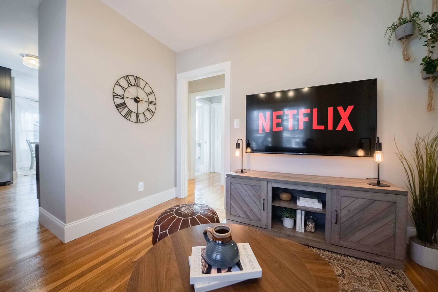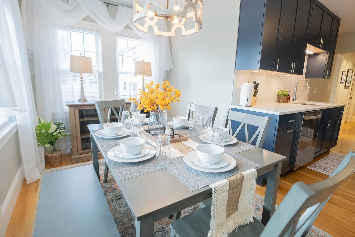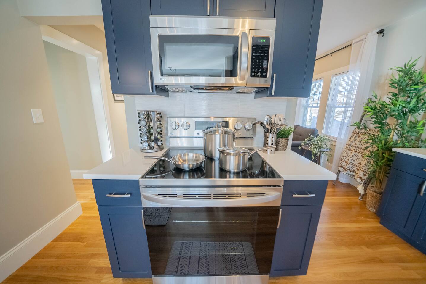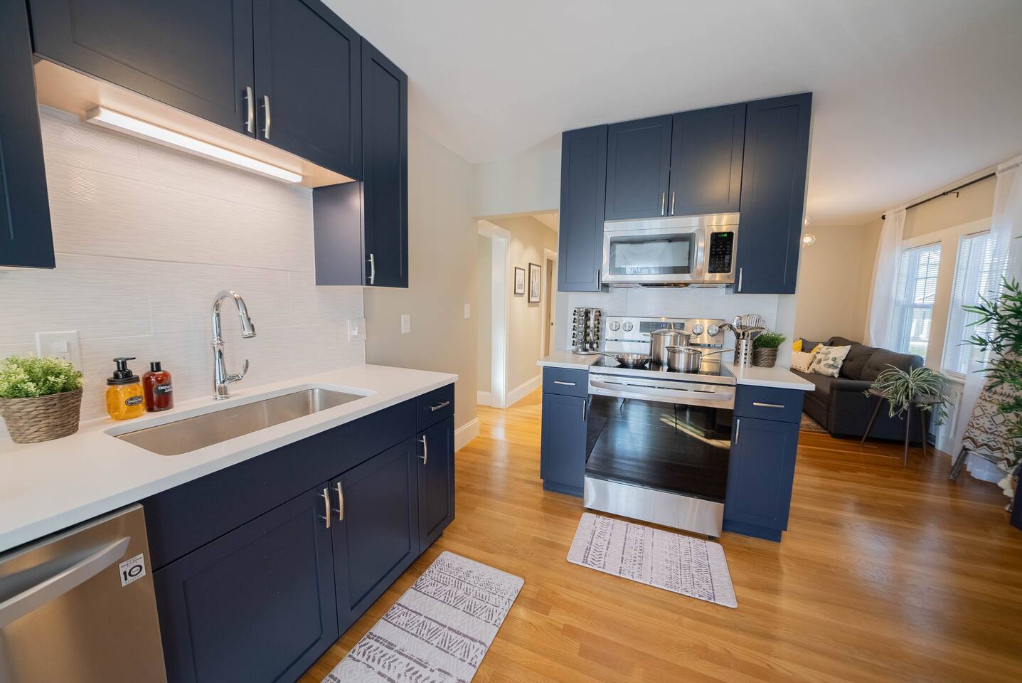 Step in from our private front entrance and you will be greeted by a stunning gallery of some of Boston’s most picturesque places. What our guests love about our listing: -The gel memory foam queen beds with down-filled pillows and comforter keeps you feeling like your sleeping in the clouds. -Our home features a lounge couch which is not only for sleeping an extra guest, but is also perfect to snuggle up in one of the many extra blanket for a cozy movie night on the large 50” smart TV with a bowl of popcorn. -The space was designed with children in mind, providing toys (Duplo Legos, lacing boards, puzzles, board games and books) for all ages, a highchair, step stool, and a pack-n-play with a 2" Memory foam mattress and all organic cotton crib sheet and blanket, making sure they have the best environment to thrive, by reducing harmful household toxins and having a beautiful yet secure place to stay….so as a parent you can truly kick back and relax. -Professionally cleaned and sanitized between each and every guest. We OBSESS over cleanliness and ensure that every surface, linens and towels are washed with natural environmentally friendly cleaners and disinfected with hot steam. BONUS – Bleach/Toxic/Fragrance-free. -In the summer, the whole house is cooled by window air conditioning units in every room, which allows each guest set their preferred temp for optimum comfort. -Our house is conveniently located only 3min from Rt.1 where you can find anything you need (ie. restaurants, grocery stores, entertainment, craft, hardware, etc.) and only 15min from Boston’s Major Attractions. -Easy self check-in via secure door keypad. -Secure 2 car off street parking, can park up to 4 cars if double parked. -Lightning fast WIFI on our large 50” SMART TV which features complementary Netflix. -Complementary breakfast includes oatmeal, regular and decaf coffee, and a variety of teas. What some of our guests don’t like about our listing: -There is no included yard in the provided guest space, the owner reserves this for their own use. However this house features a nice covered porch area with seating for enjoying time in the fresh air. There are also many attractions very close to get out and stretch restless limbs- including a zoo, peaceful hiking trails which you can see the Boston skyline from, parks, and indoor obstacle courses and escape rooms, all easily found with the help of our guest guide book. -Our home is a multi-family property which means there is a potential for noise and sounds of footsteps from the apartment above where the owner lives. These spaces are completely separate with their own private entrance and the only space shared between them is the basement laundry area. Our home comfortably sleeps up to 8 people. All our rooms feature queen beds and the bonus room is equipped with a brand new queen sofa bed with an included memory foam topper. All beds are made with freshly cleaned linens. Enjoy complimentary wireless internet with Netflix, tea, coffee, and oatmeal during you stay. The kitchen comes fully loaded with brand new stainless steel appliances such as microwave, fridge, stove, and dishwasher along with glasses, mugs, dishes, and cutlery. Once you stay with us, you’ll feel like you’re simply staying at your own home.